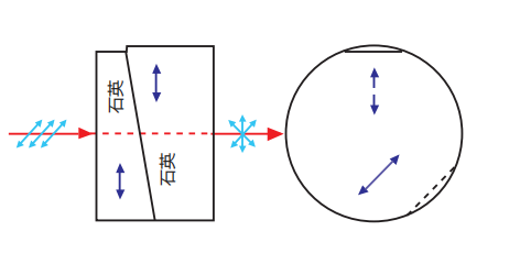 The optical axis of each optical wedge is parallel to the light-transmitting surface, and the angle between the optical axes of the two crystal quartz optical wedges is 45 degrees.