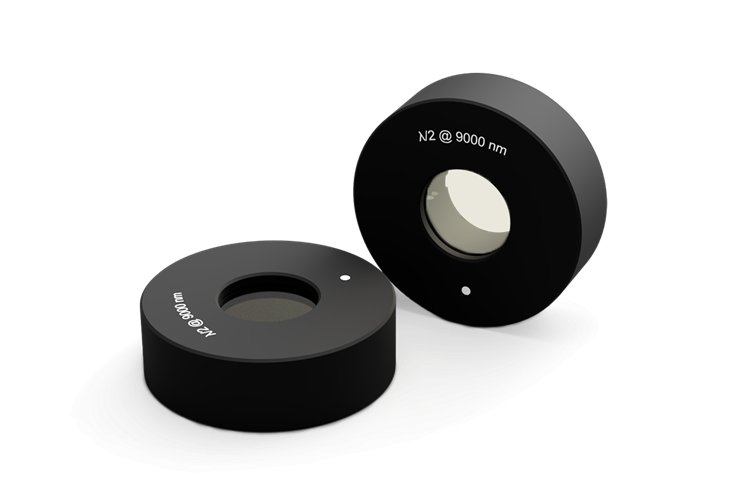 This wave plate is monolithic and can generate 1/4 or 1/2 phase delays. Other delays need to be customized. The lens is installed in a 25.4x6mm black anodized metal mount with an effective light-passing aperture of ø10mm.
